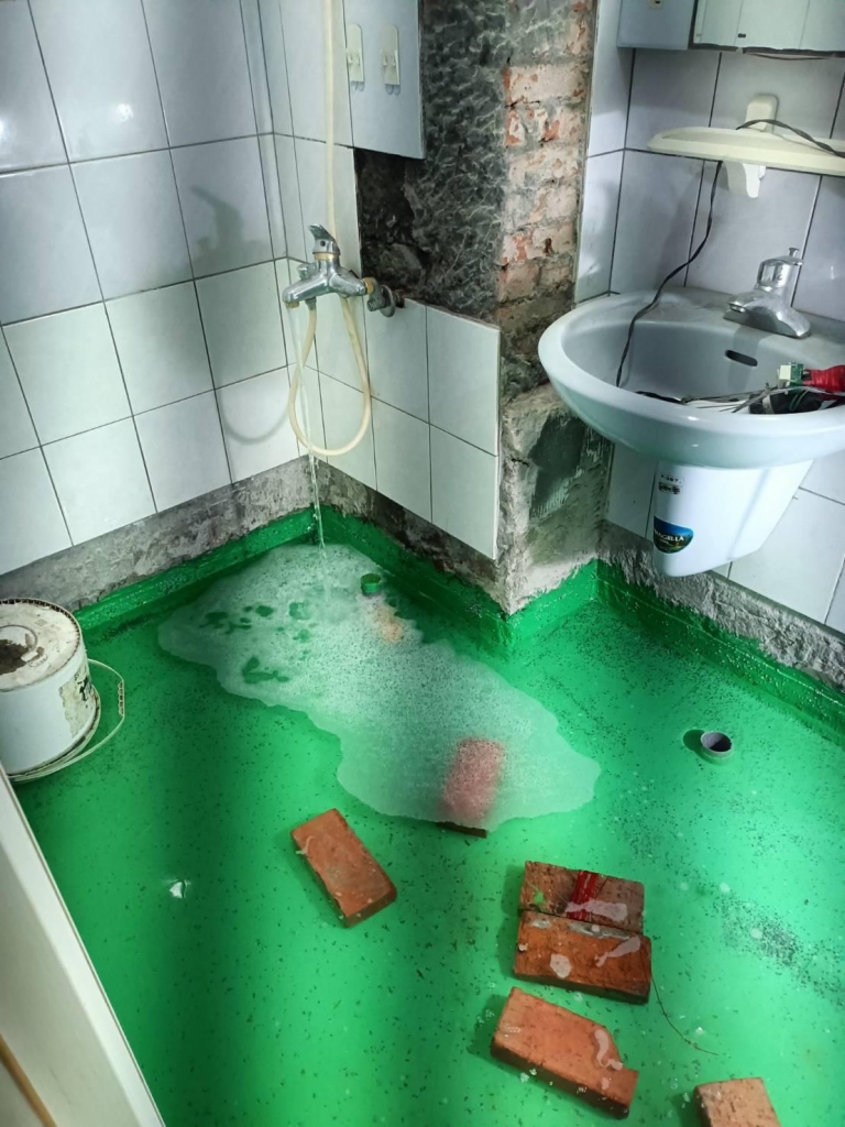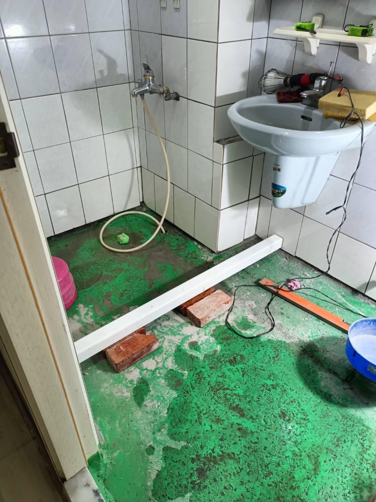 淡水浴室漏水施工中